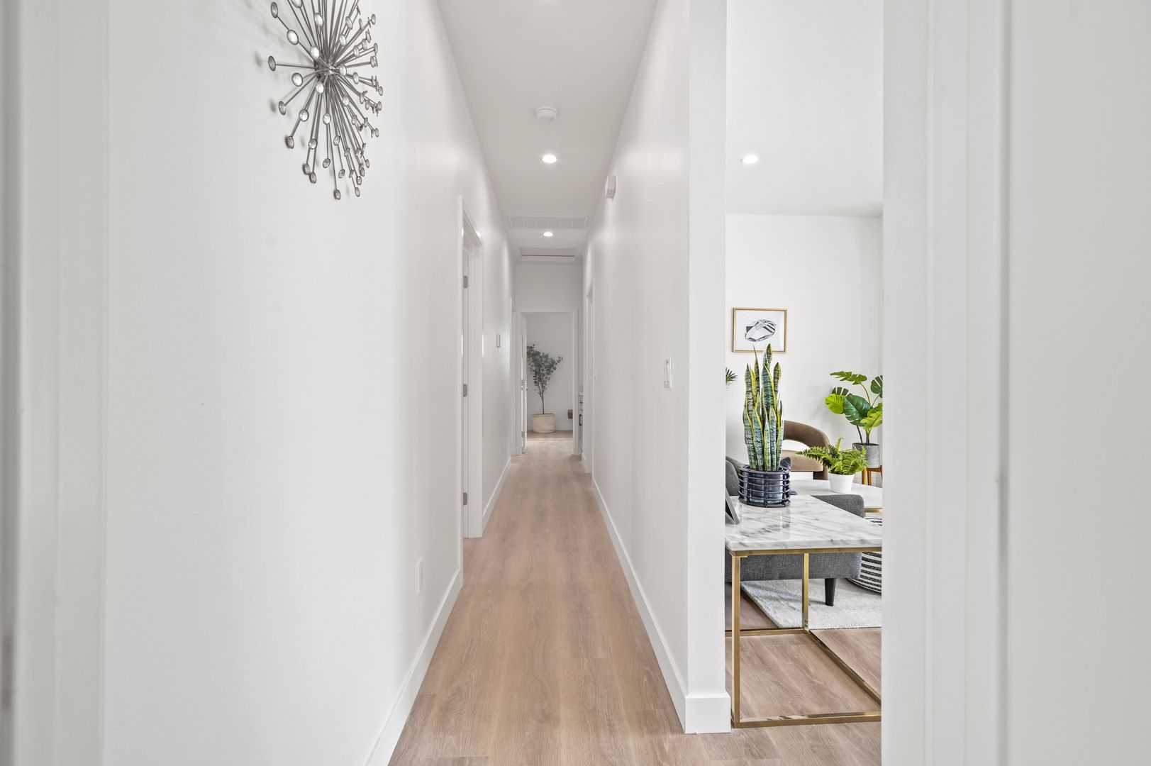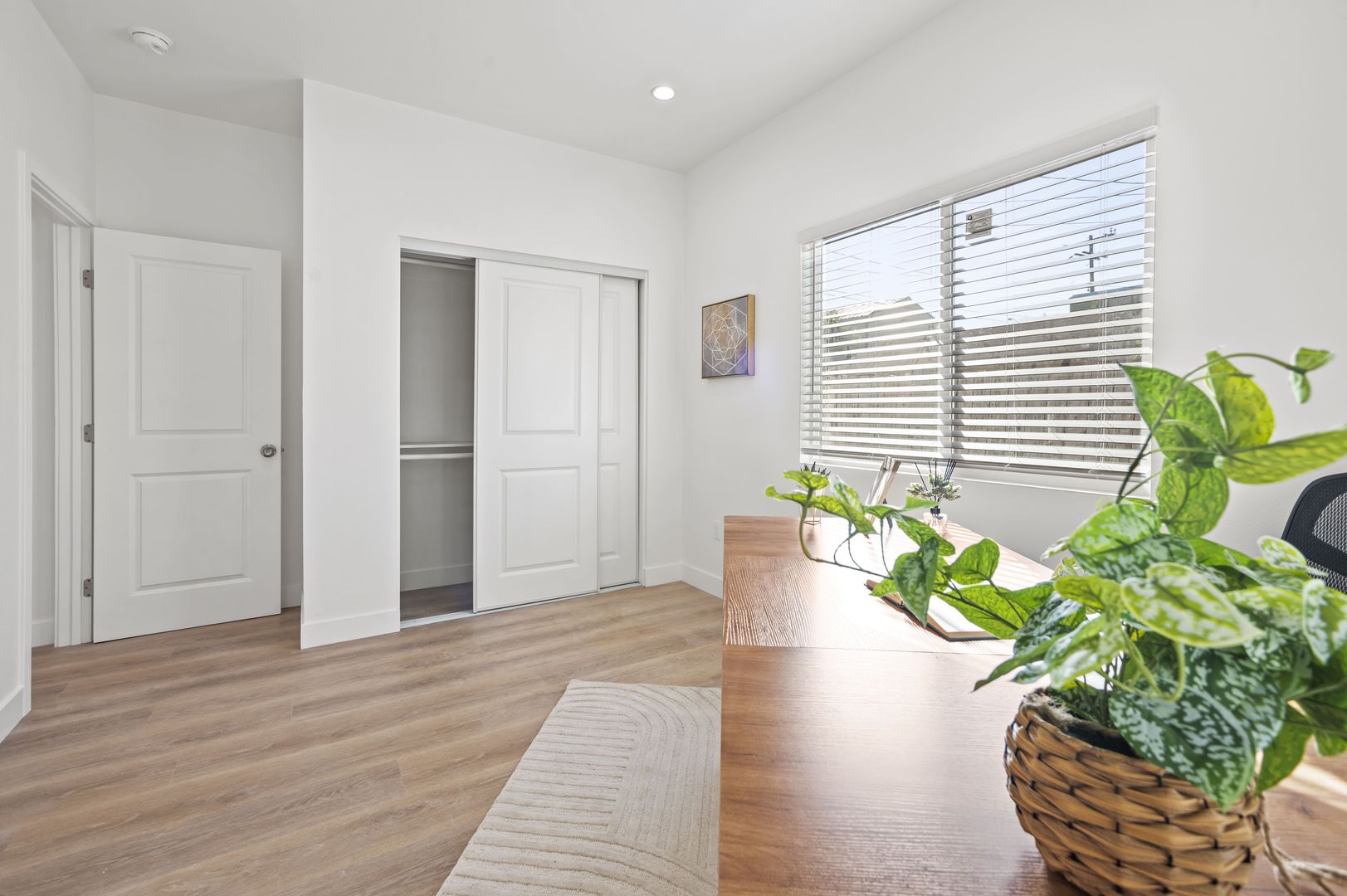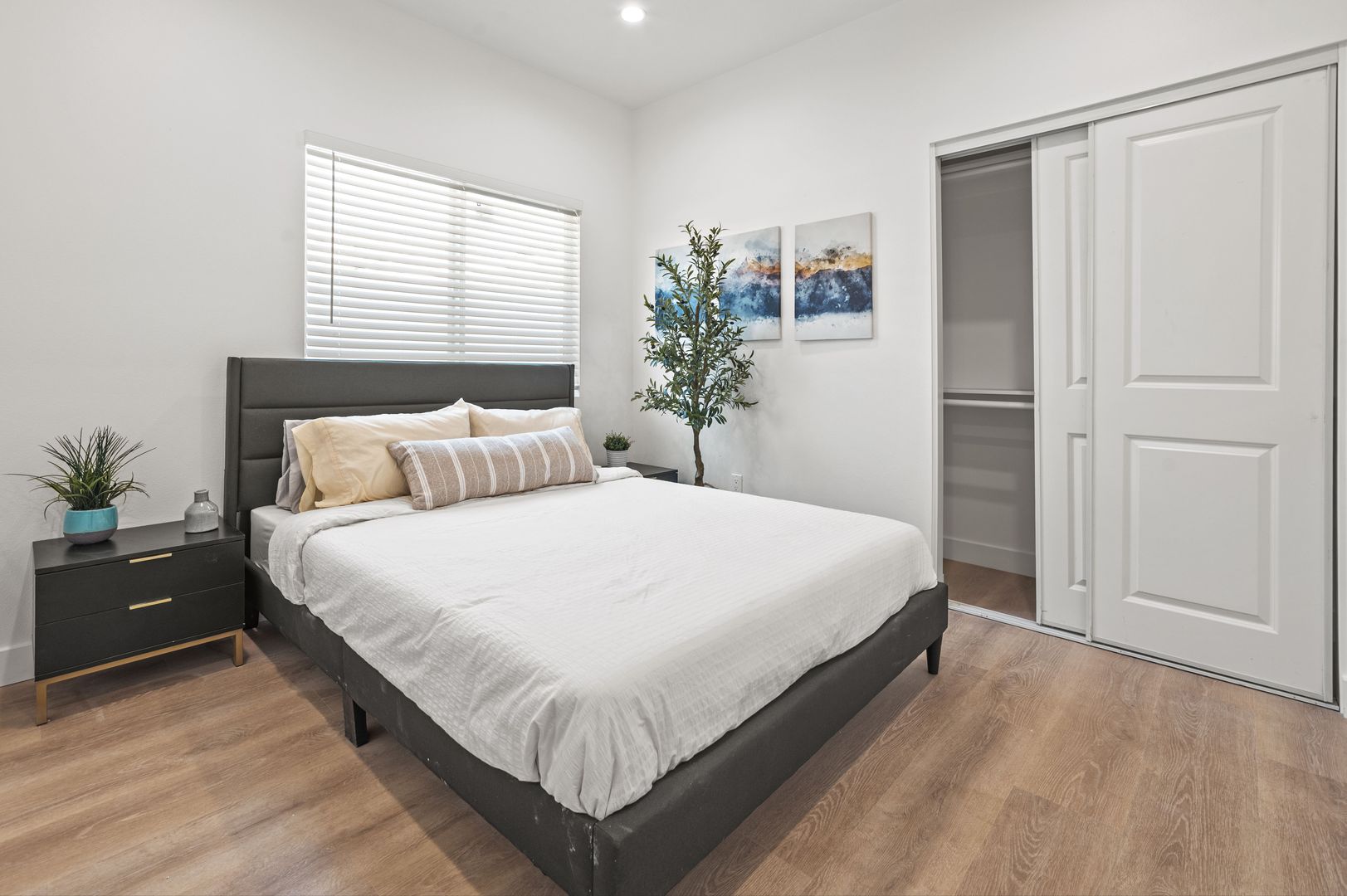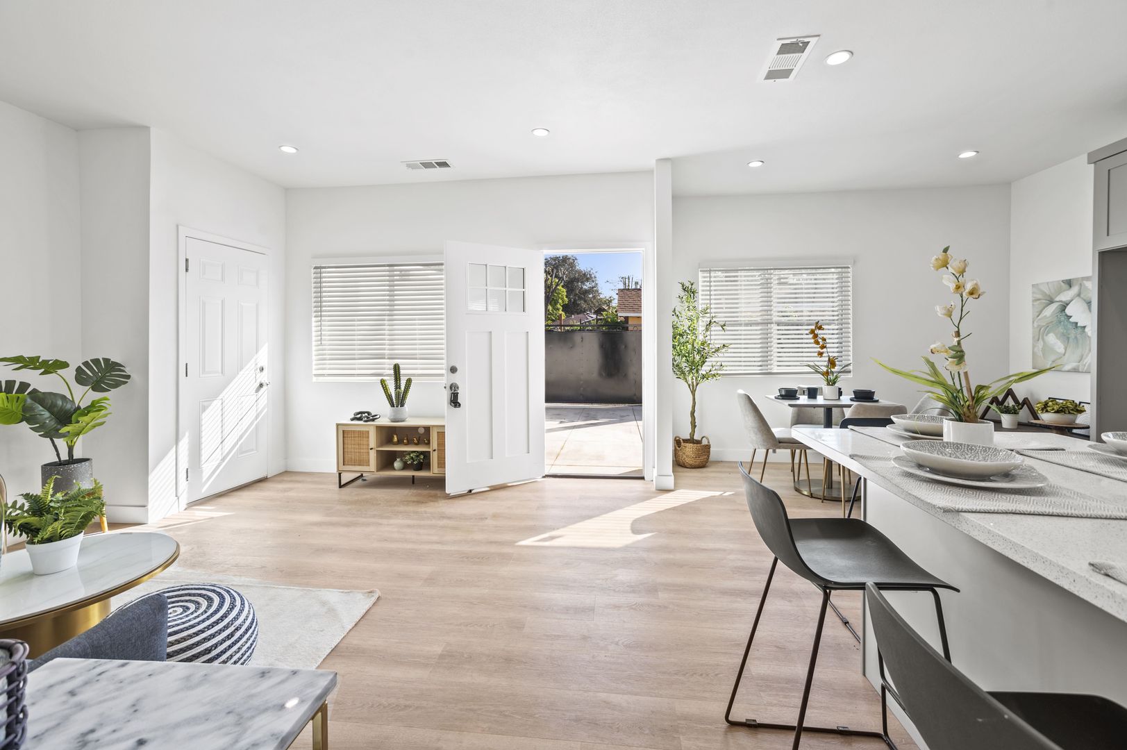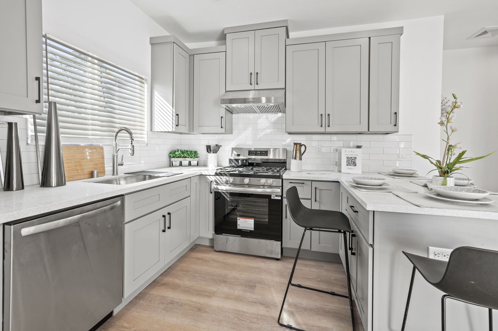 Enjoy modern living in this exceptional brand-new construction residence! This impressive home features a spacious layout with 4 bedrooms and 2 bathrooms, highlighted by 9-foot ceilings and an open-concept floor plan. The modern kitchen boasts sleek cabinets, quartz countertops, and modern appliances. Experience comfort with a central A/C and heating system, recessed lighting, a walk-in closet, and washer/dryer hookups. The property also includes 2-car garage parking. Nestled in a highly desirable neighborhood, you'll enjoy easy access to major freeways, dining, and amenities. Please note: washer, and dryer are not included. Act now and make it yours today!